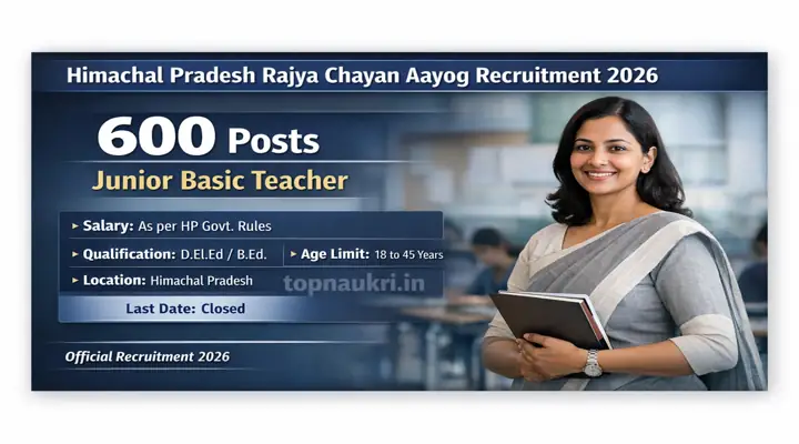 | Himachal Pradesh Rajya Chayan Aayog | Junior Basic Teacher | 600 | Himachal Pradesh |
